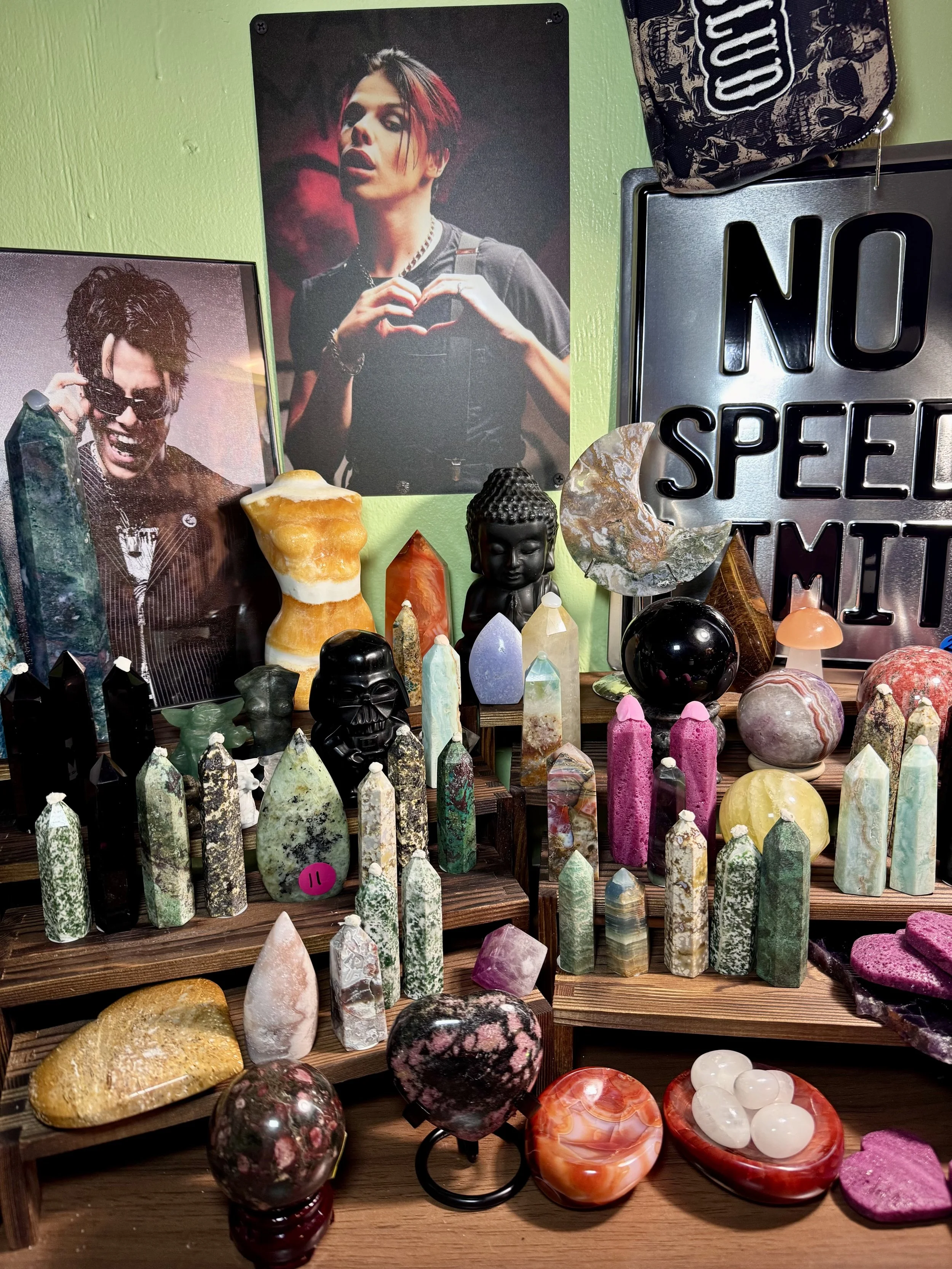 My name is Crystal. I am a single mother of 3, and lover of yungblud, rock and roll, and all things witchy and odd; I love to collect and sell crystals! Welcome to my store!